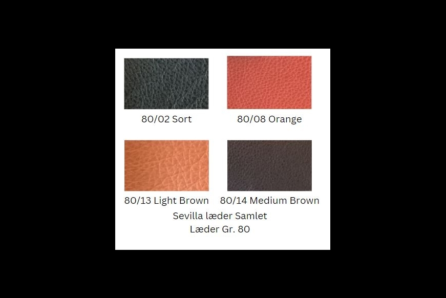 Betræk: Sort 65 kraftig læder. farve: 02 Black - 13 Cognac - 14 Medium Brown