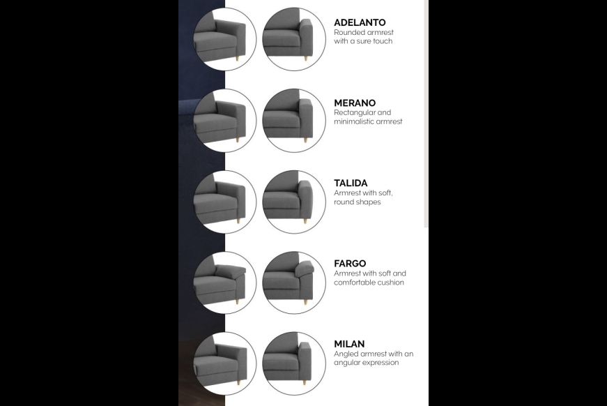 Der er tre valgmuligheder for hvordan sofaen kan afsluttes: