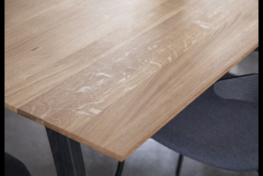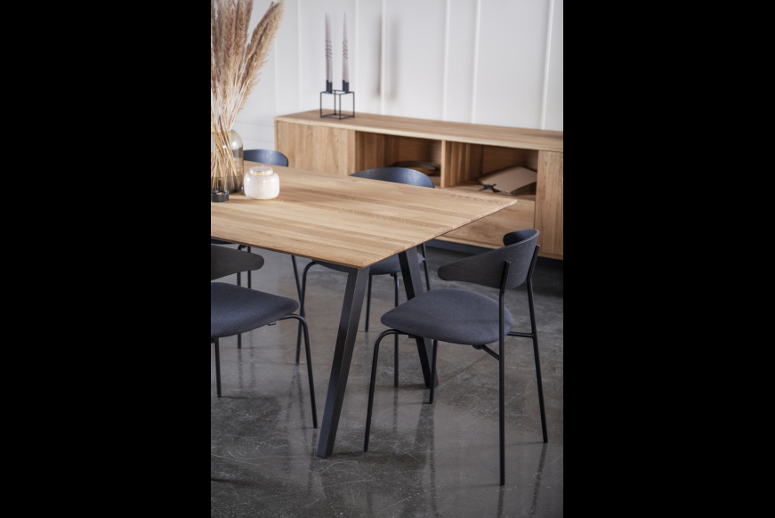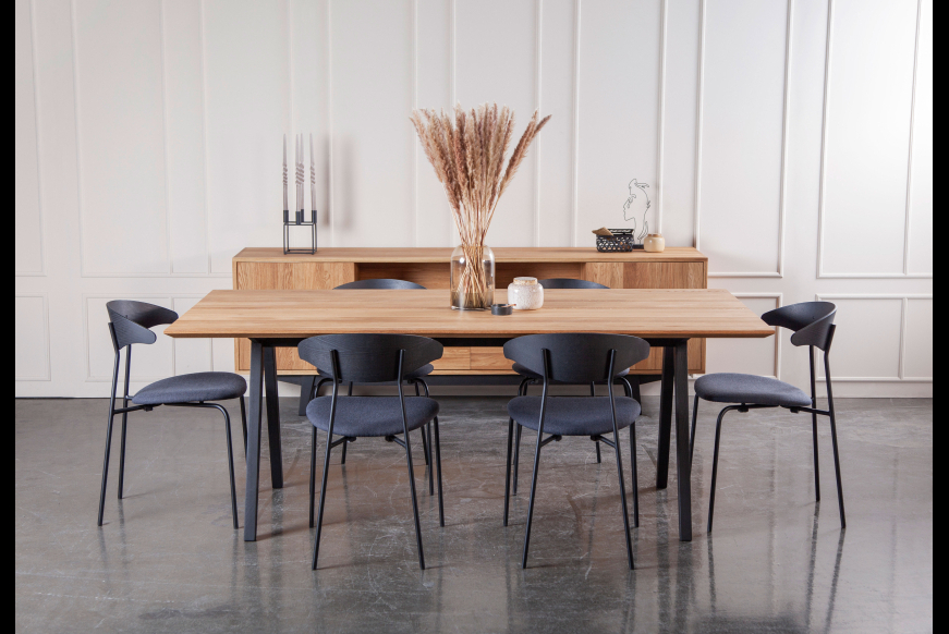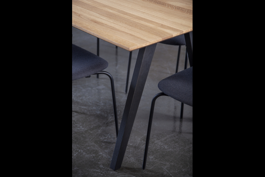 FLEX fra Kristensen & Kristensen i skandinavisk stil. Et lækkert bord produceret af dansk producent med hovedkontor i Esbjerg. Bordet er vist her i massiv oliebehandlet eg med sort olieret ben.