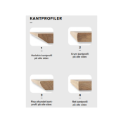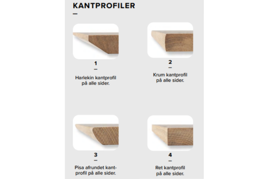 Bordet kan tilpasses til dine ønsker hvor der kan ændres på bl.a. kantprofil, ben type og så fås den i mange forskellige behandlinger, vi har udvalgt 5 farver, som du kan vælge imellem her på hjemmesiden.