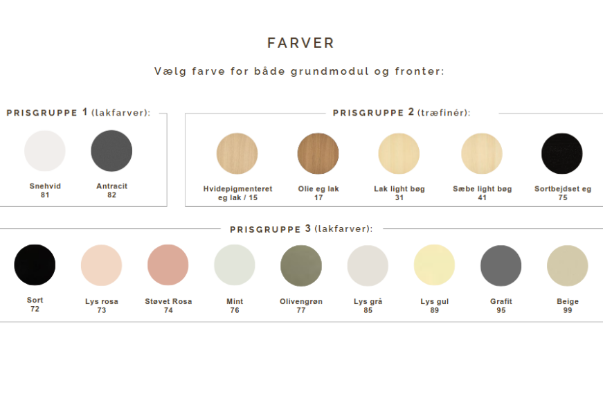 * Skriv venligst, hvilken farve du ønsker korpus og skuffe i under bemærkninger, når du laver ordren.