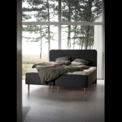 Der kan vælges mellem 7 forskellige farver stof: Sand, antracit, lysgrå, blå, stryktur lysebrun, struktur mørkeblå eller struktur varm grå - spørg gerne og vi finder lige netop den seng, som passer bedst hjemme hos dig.
