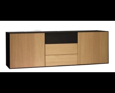 Sæt med skænk og overskab, med 2 skuffer og 3 klapper.