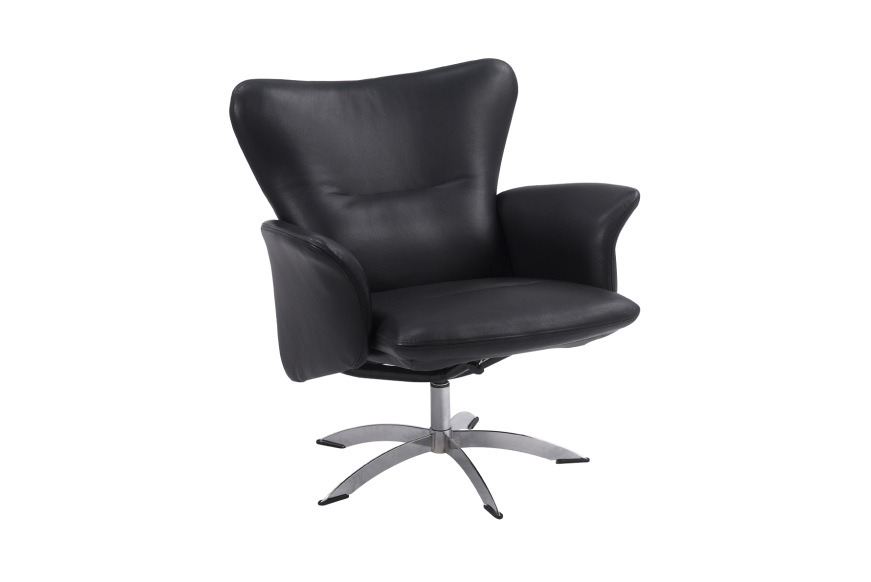 Elegant drejestol med flot design. Ryg og sæde er nem at regulere. Monteret med luksus semianilin læder overalt.