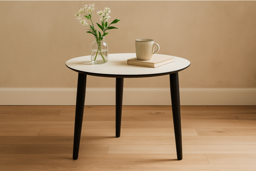Design dit eget sofabord. Rundt sofabord. Højtrykslaminat.