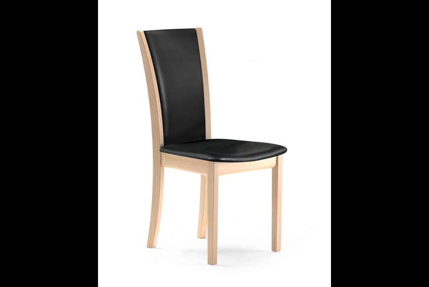 Klassisk designet spisestuestol i hvidolieret eg, og monteret med sort stof. fra Skovby Møbelfabrik,